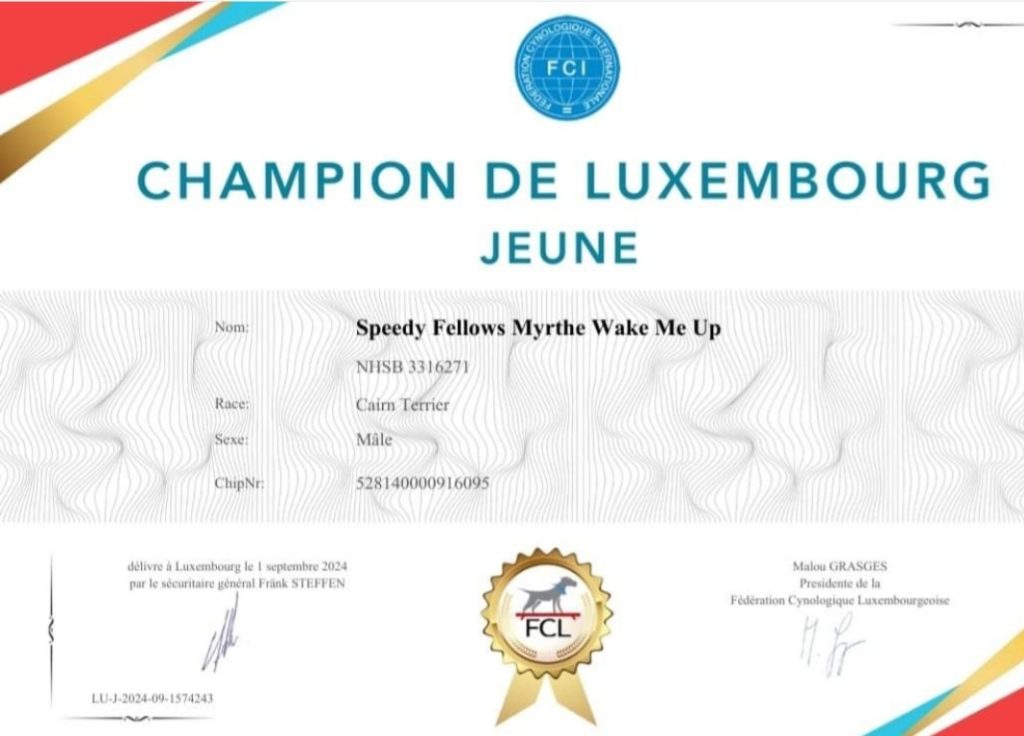 14.07.24 Terrier Club du Grand-Duché de Luxembourg KM: Mr. Graulus Francois. U.1. Hierbij ook: LUXEMBURGS JEUGD KAMPIOEN 2024