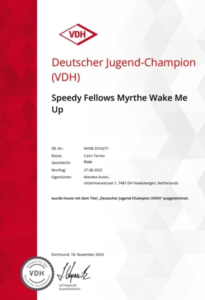 17.11.2024 KM: Hans-Erhard Grüttner(D) 1.U Beste Jeugdhond Jgd.cac Kft + VDH Hierdoor ook Duits Jeugdkampioen (VDH) geworden
