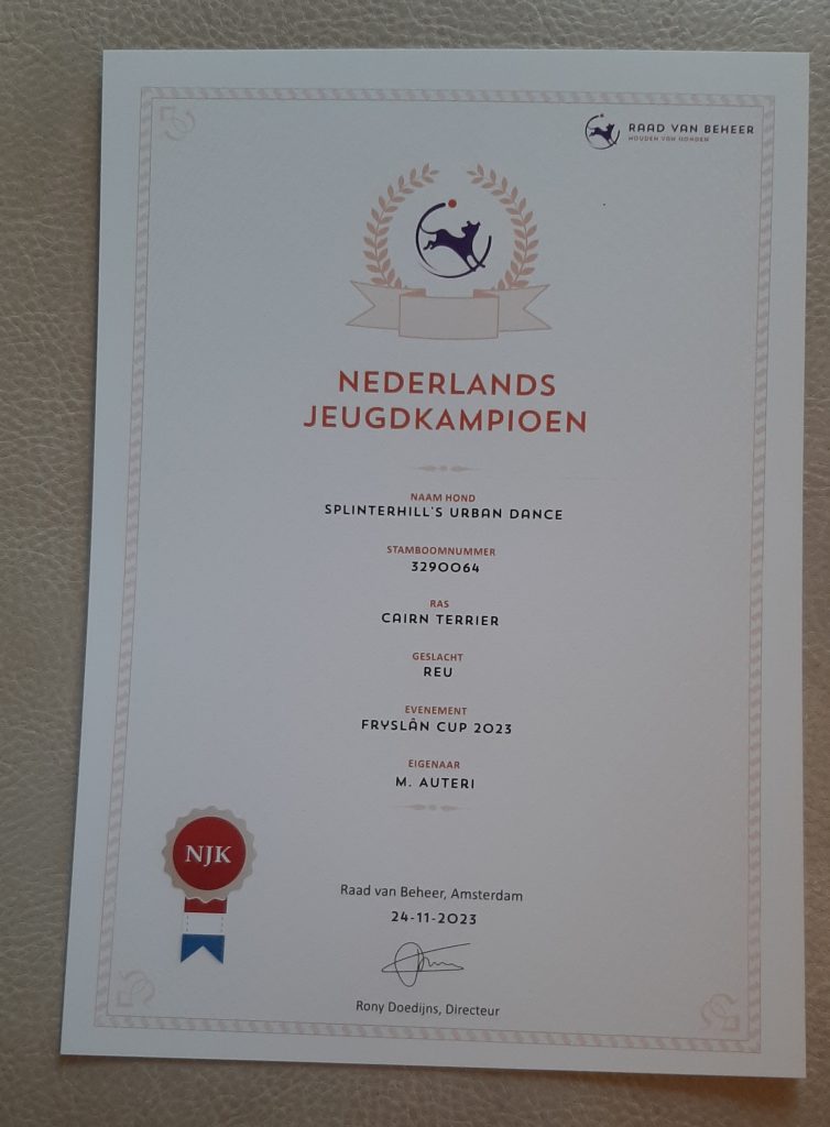 Door deze beoordeling is hij nu ook Internationaal Jeugd Kampioen geworden.