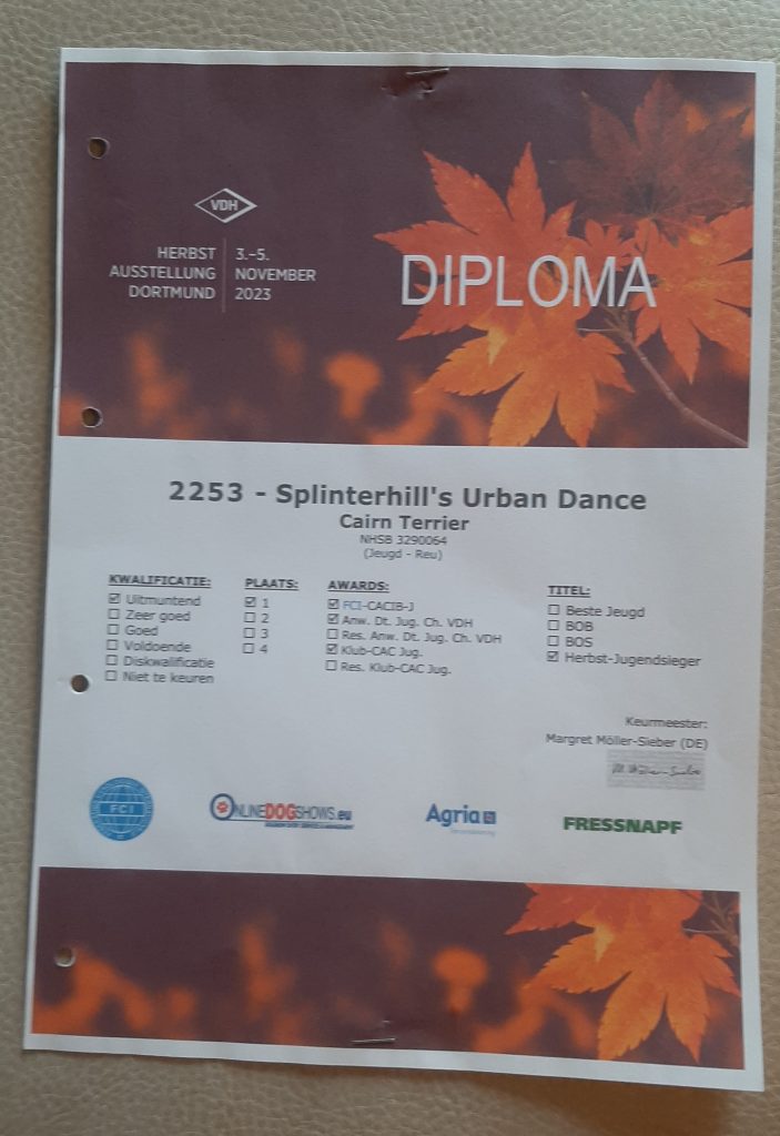 05.11.2023 Herbst Ausstellung Dortmund KM: Margret Möller-Sieber DE) 1U FCI-CACIB-J / Anw.Dt.Jug.Ch. VDH / CAC Klub-Jug. HERBST-JUGENDSIEGER
