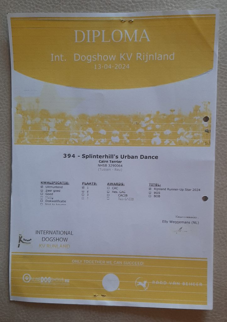 13.04.24 Dogshow Rijnland KM: Elly Weggemans (NL) VB.1 Beste Puppy en tevens RIJNLAND PUPPY STAR 2024